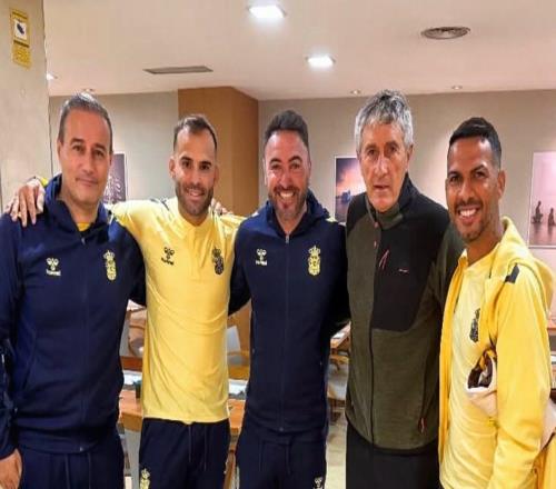 国安前主帅塞蒂恩受邀观战桑坦德竞技比赛,并与比埃拉合影